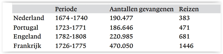 Reken het gemiddeld aantal slaven per reis, per land uit.